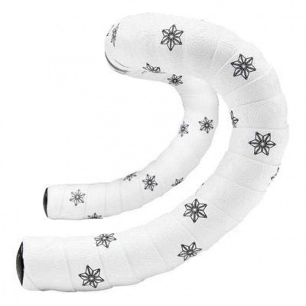If you’ve ever wanted to express your stylishly-classy personality through the way you dress your handlebars, then all you need is a box of logo printed Supacaz Super Sticky Kush Bar Tape and just a little bit of free time. Fusing performance and style to create a distinctive, pro-rider look, this high-end tape features impressive base colours with a contrasting-coloured Supacaz logo print repeating throughout its length. This is a top-notch performance tape with just enough squish to provide effective vibration-damping and a comfortable lived-in grasp. Super Sticky Kush Bar Tape has a distinctly satisfying feel in the hands which adds a pleasure to bicycle riding that’s often missing from other brands of tape. The tape is extremely tacky, especially when wet, which makes riding without gloves very easy. Regardless of whether your hands are dusty or sweaty, this tape won’t slip or let you down. Supacaz Bar Tape is easily cleanable and features uniquely embossed patterns presented in great variety of colourings and styles. Many of the worlds’ top riders, such as Mark Cavendish & Peter Sagan swear it’s the only bar tape in the world they’ll use.Box Contents2 x Super Super Sticky Kush Bar Tape Rolls (enough to do right & left handlebars)2 x Star Bar Plugz (100% Aluminium)2 x Strips Patterned Finishing Tape to complement your bar tapeEasy InstallAlthough it might take a few tries to get the tension and overlap just right, the estimated install time for bar tape is approx 30 minutes for first-timers; 15 minutes or less for experienced mechanics. Supplied with the pack are two generously measured lengths of matching bar tape. The distinctive embossed pattern helps to line up the tape as you’re wrapping it around the bars and the good amount of stretch allowed in the tape enables it to be pulled taut around the handlebars as you go.