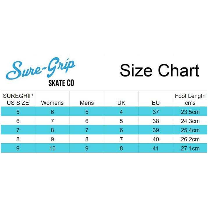 Sure-Grip Boardwalk Skates Superior leather boot with a stitched composite nylon sole. High rebound urethane wheels and ABEC 3 bearing. The Boardwalk is an exceptional outdoor skate designed around the beach lifestyle. Comes in multiple colors that are sure to turn heads while skating down the BOARDWALK. Comes with matching color wheels and laces. Special stitched logo on tongue will ensure that you get the original Boardwalk skate.