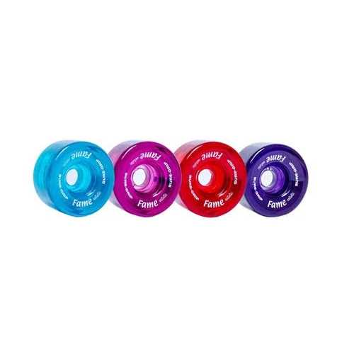 Indoor high performance competition artistic wheels 57mm/97a durometer Sold in sets of 8 Made in the USA Sure-Grip Artistic Fame wheels are 57mm in size. Ideal for competition skaters, they have a hardness of 97A. The USA made Clear colored Artistic series provides quicker response and speed. An excellent wheel at a fraction of the competitions price.
