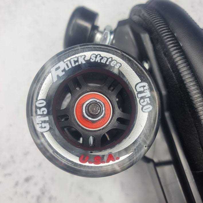 Synthetic leather boot Nylon Plate GT-50 Swirl Wheels ABEC-5 Bearings and Carrera speed toe stop Available in men’s sizes, whole sizes only, medium width. Women should choose one size smaller. The GT-50 skate package is a perfect beginner skate for children to adults. Fully functioning roller skate. Features a synthetic leather boot, ROCK plate, GT-50 swirl wheels, ABEC -5 bearings, and a Carrera speed toe stop. Ideal for Recreation skating and beginner roller derby. Some larger skates (size 14 and 15) will come with an aluminum Super X plate.