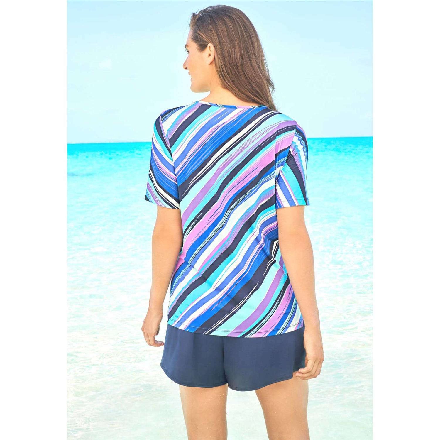 Swim 365 Women’s Plus Size The Swim Tee, 22/24 – Blue Stripe Palm