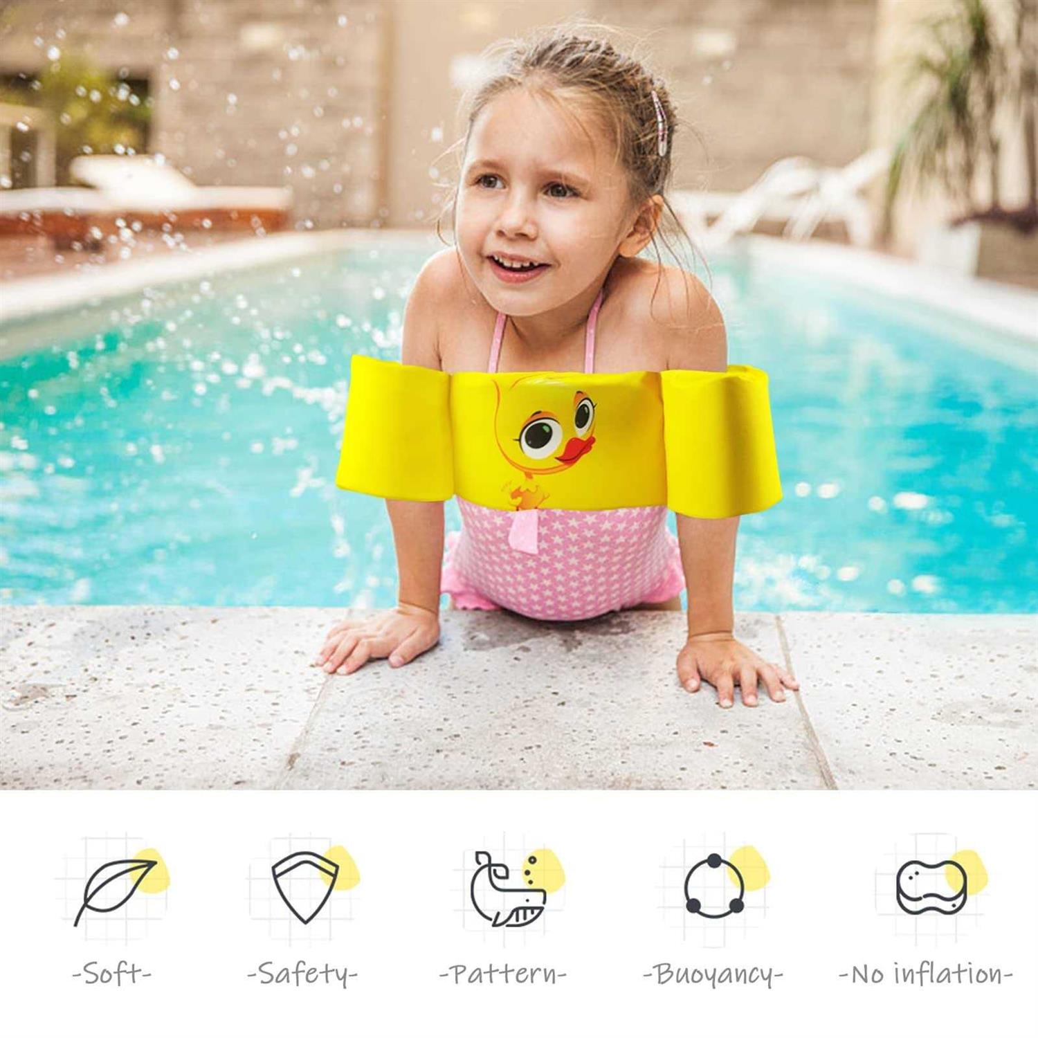 Suitable Age & Weight: The swim life vest fits for 2-6 years old child (Buoyancy in the 30-55lbs of kids use) Lovely cartoon design make our kids floaties even more attractive and easy to spot in crowded pool areas. Comfortable Material: Made of Polyester +Waterproof non-woven + Foam foats.heavy stitching, against ripping added for extra security. Security Protection and Adjustable Buckle: This swim vest for kids adjustable straps and security buckle at the kid’s back.keeps the vest from sliding off during use, You will be more assured of your baby’s safety when they are swimming. Easy to Wear: Swim aids for toddlers are immediately use; simply pull over arms and buckle up; comfortable to wear due to the soft arm band construction.Swimming floats for kids are great for beginners when used at a pool, beach, sea, ocean, lake & river. Note: This swim life vest is a child training life jacket, allowing them to learn swimming in a safe condition. This is a swim aid and should not be used as life-preserving equipment. Adult supervision is required at all times. strong Kids Pool Floats Swim Vest Life Jacket for 2-6 years old, Toddler Arm Floaties Swim Aid with Water Wings and Shoulder Strap, for 30-50 lbs Boys and Girls, Children Puddle/Beach, As A Jumper /strong p Specifications p Style: Cute Cartoon p