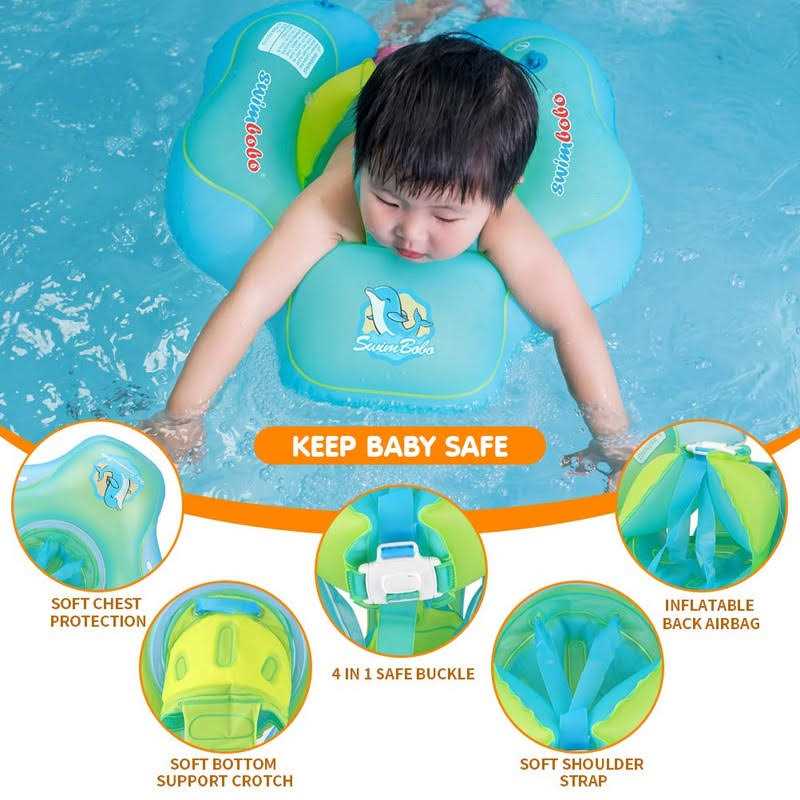 Swimbobo New Upgraded Baby Swimming Float Kids Inflatable Swim Ring with Safety Support Bottom Swimming Pool Accessories for