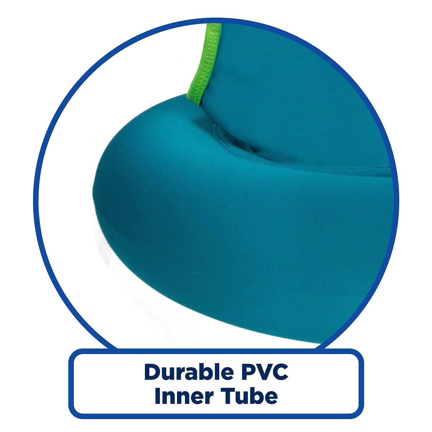 Help your kid learn to paddle with the SwimSchool Deluxe Tot Trainer with Sleeves from Aqua Leisure. This flotation trainer is the ideal swim aid for your child. The Tot Trainer is designed to place your child in the forward position to build pre-swimming skills, floating and leaning forward. With a durable, PVC inner tube with an inflated size of 16.5 inches, this float is perfectly designed to accommodate young swimmers. The safety strap and rugged inflatable swim training tube make this a must-have swim aid for your child. The trainer fits comfortably, resting at your child’s chest and fitting snuggly with the adjustable strap. The comfortable, quick-drying fabric will keep your child comfortable all day at the pool. You’ll be able to teach your 2 to 4-year-old learn basic swimming positions when they’re nestled into Deluxe Tot Trainer.