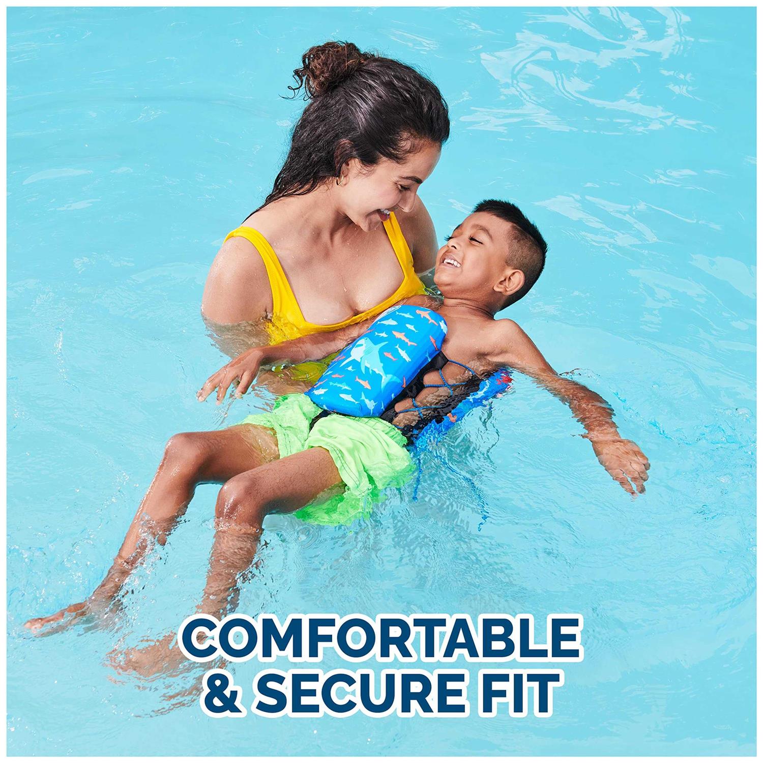 Swim Vests by SwimWays. Details:The SwimWays Power Swimr graduated training vest gives you everything you need to teach your child how to swim! The nine inner flotation pads can be removed, one at a time, as your child’s swimming ability improves. This creates the perfect environment for your child to learn to swim securely and quickly, and at their own pace. The adjustable elastic side cords and leg strap keep the Power Swimr secure while leaving your child’s arms free. Hidden pockets make the removable flotation pads inaccessible during use – so parents have control. Medium size fits most children aged 3-6 years and 35-55 lb. (15-25kg). From introducing your little one to the water with our Infant and Baby Spring Float line, to providing buoyancy for the first paddle with the Toddler Float and Swim Trainers, to finally developing strength and confidence with Soft Swimmies and Dive Toys, the Swim Steps program offers products for all skill levels!