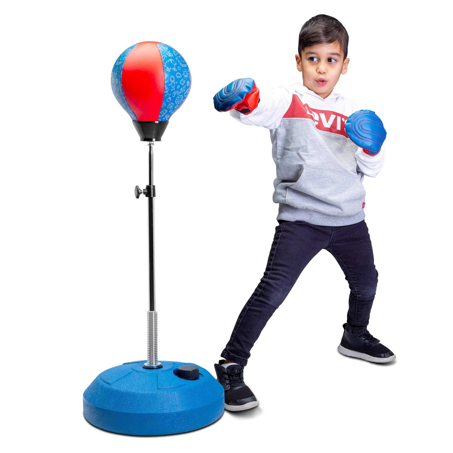 Build Skills & Have Fun: The kids punching bag can provide hours of entertainment great boy toys as kids exercise equipment Keeps kids trained and builds their confidence, it will raise the heart rate to give them a great workout! The boxing bag helps build timing and speed, Improves hand-eye coordination. Adjustable height Stand for your convenience: The height of the punching ball stand is adjustable from 31 inches to 42 inches perfect boy toys for kids ages 3 – 10. Easily adjustable to fit everyone’s needs.