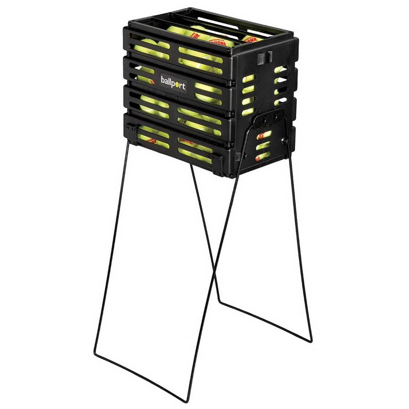 Tourna Sampras Ballport 80-Ball Basket, the choice basket by champion Pete Sampras, is made of tough polypropylene. No wires to rust, welding to break or paint to peel. Handles rotate and lock up or down for easy pickup and dispensing. The Ballport 80-Ball Basket is easy to assembly with panels locking into place and legs easily attached with provided screws. Rolling bars on the bottom help ease balls into the basket and hold them in. Sliding bars on the top slide open to make dispensing easy, and lock closed to hold balls during transport and storage. Handles lock into an upright position for ball collection, and in a downward position for ball dispensing with a patented locking feature.
