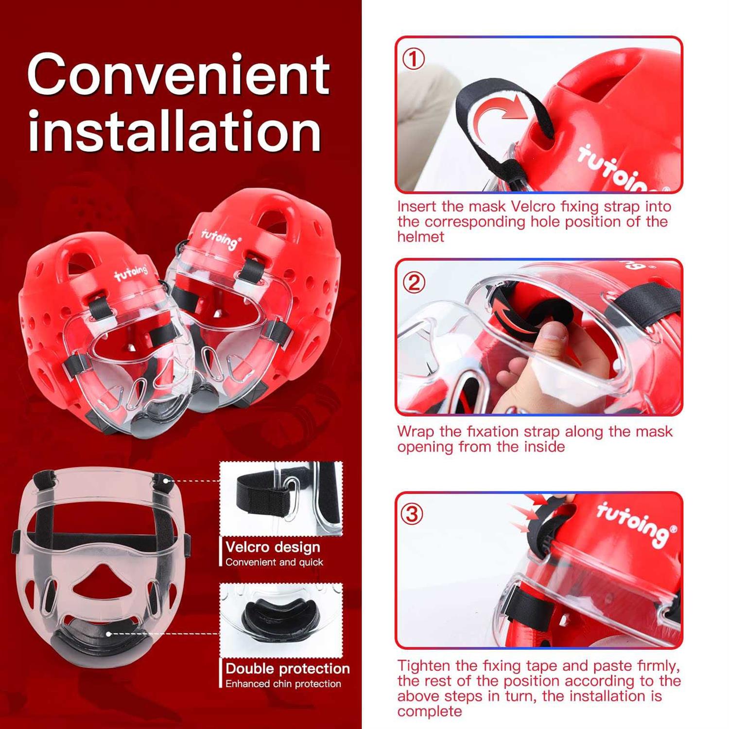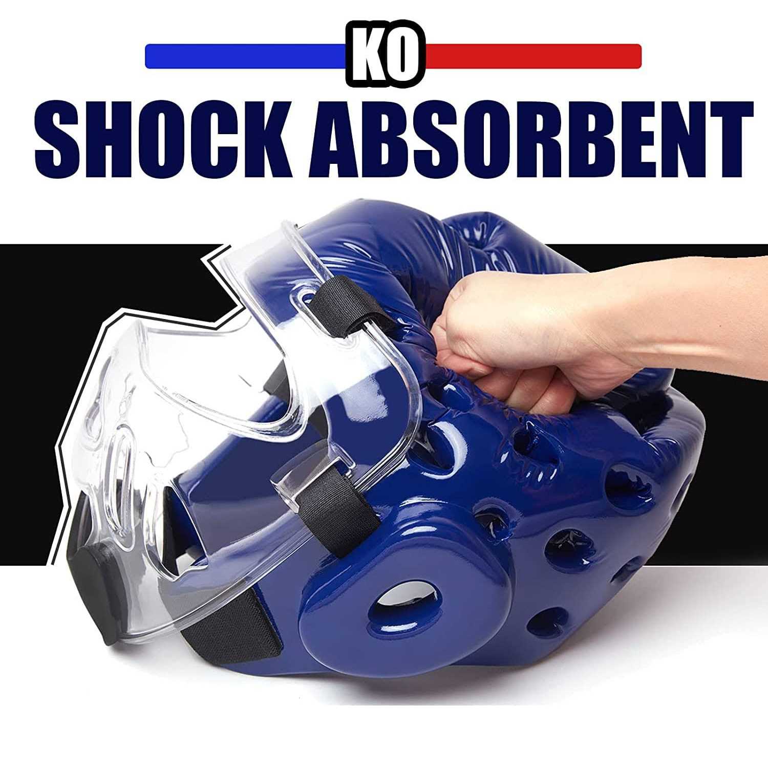 TuToing Kids Adults Karate Headgear MMA Martial Arts Helmet, Removable Face Shield, Soft Head Gear for Sparring Grappling Muay Thai Kickboxing Taekwondo Training SPECIFICATION: – Material: PU Leather – Color: Red/Blue – Size: S/M/L Reference basis for head circumference: S: 48-52cm (1.57-1.70ft) M: 52-56cm (1.70-1.83ft) L:above 56cm (above 1.83ft) Product Features Note: Put it in a ventilated place for 6 hours, the smell will disappear naturally.Adjustable: Boxing headgear for kids 360full coverage, tightness can be adjusted at will, elasticity is good, and effective protection. Removable Face Shield: The vented poly-carbonate face Shield is lightweight and offers more peripheral vision. Soft/Light: Lightweight, soft, inside high density foam, good elasticity.Kickboxing Helmet is light in weight, and does not cause a burden. Breathable Soft Headgear: soft helmet is equipped with multiple air vents to discharge heat and moisture during exercise, which is beneficial to keep dry. Versatility: Versatile kickboxing headgear that is perfect Ideal for MMA, Boxing, Kickboxing, Muay Thai and more.