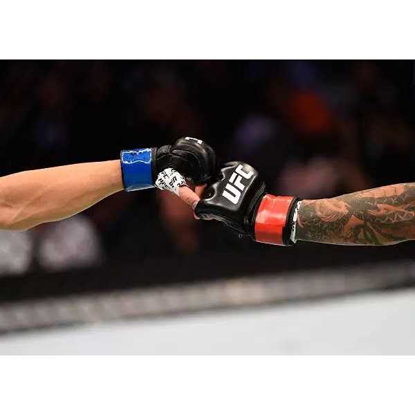 The UFC Official Mens Fight Gloves in size medium are ideal for MMA training and competition, perfect for professional and elite users to stimulate real competition scenario. Elevate your grappling skills and try new striking techniques with these 4 oz UFC Official Fight Gloves, designed with thick layered impact-dispersing gel pad that extends and curves over knuckles, covering the critical strike zone, this glove will keep you well protected while keeping the fist in a natural, less fatiguing position. Featured propriety dual-locking closure system for premium wrist support, fingerless design and soft flexible leather gives you more flexibility and free range of motion without sacrificing comfort. Adjustable, secure wrap-around hook and loop closure keeps gloves firm and assuring non-slip snug fit. UFC Equipment is designed to deliver the ultimate performance for combat sports training and fitness workouts.