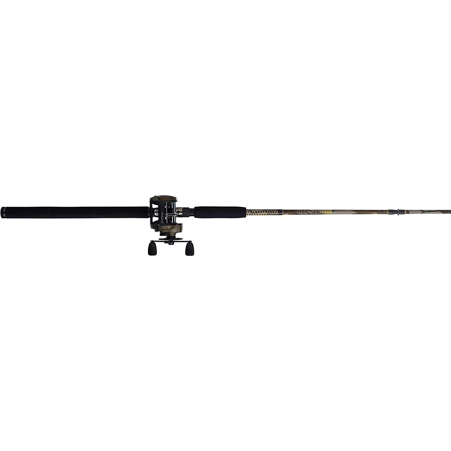 Rod & Reel Combos by Ugly Stik. Details:Ugly goes camo. The Ugly Stik Camo conventional combo combines the legendary durability and dependability of Ugly Stik with the legendary Mossy Oak Bottomland camo design. These combos also feature Ugly Tech construction, Ugly Tuff guides, and the Ugly Stik Clear Tip design. Fishing has gotten too pretty. Unscratched sparkle barges with nuclear-powered engines. Rods that act like skittish thoroughbreds instead of unshod workhorses. Fish pictures taken for ‘likes’ instead of refrigerator doors. It’s time to fish the way it’s meant to be done, with tough, durable tackle built to provide ten whopper fish pics for every one of some dandy holding a fancy rod and a fingerling. It’s time to fish ugly.