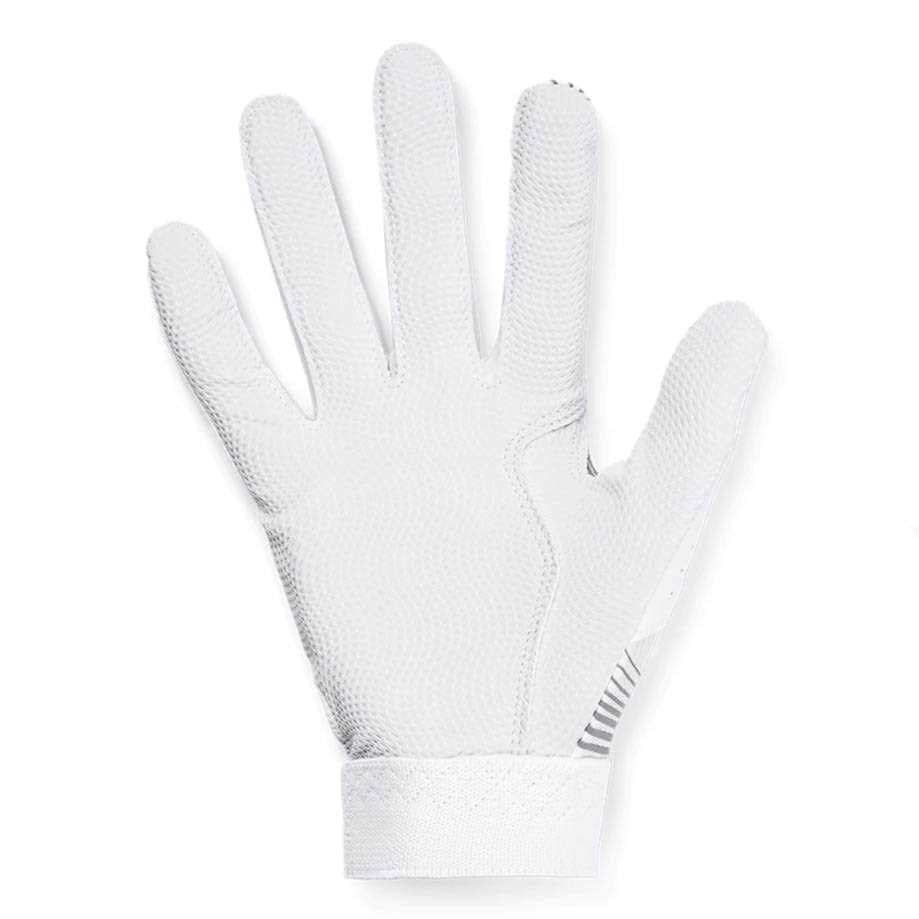 Built with HeatGear fabric to keep players hands cool, dry & light all game long. Available in 13 color models. Performance synthetic grip with overlays that add support and durability in all the right places. Perforations built over the fingers adds extra breathability. Elastic wrist cuffs with Velcro closure provides support & a locked‐in, powerful feel. Renowned Under Armour HeatGear technology wicks perspiration away from skin to provide dry comfort. Embossed UA Logo at the back of the palm. Internal UA Lockertag allows personal uniform number marking. Mens Sizes Small ‐ 2X‐Large. Available in 13 colors.