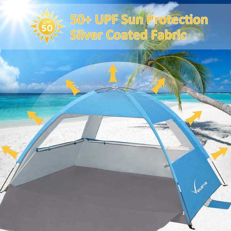 - Venustas Beach Tent Beach Umbrella Outdoor Sun Shelter Canopy Cabana UPF 50+ Sun Shade Easy Set Up 3-4 Person Lightweight and Easy to Carry