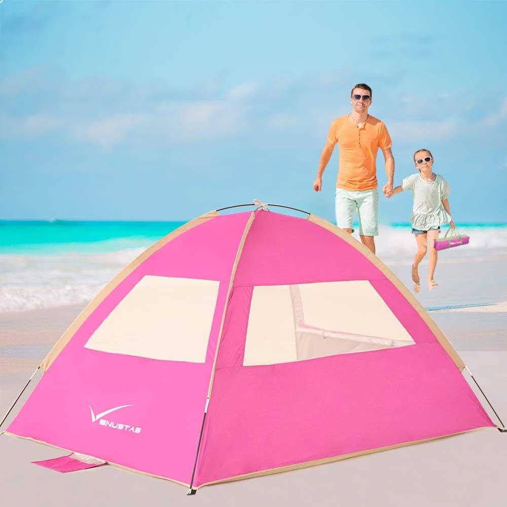 Venustas Beach Tent Sun Shelter for 3/4-5/6-7/8-10 Person, UPF 50+ UV Protection Beach Canopy, Lightweight and Easy Setup