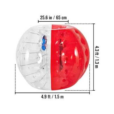 Inflatable Bumper Ball–Being Fun and Active: Our inflatable bumper ball is a large clear ball with comfortable handles and adjustable shoulder straps, made of PVC material with better sealing and welded edges to ensure no air leaks for extended play. This is a wonderful attraction for those who love bouncing and kicking. In addition, inflatable bubble balls are also suitable for organizing games. Tips 1. Make sure your head is well inside the bubble ball and don’t lift the bubble ball too high. 2. Limit the running distance and speed. 3. For longer lifetime use, do not over-inflate and fold carefully after deflating for storage.