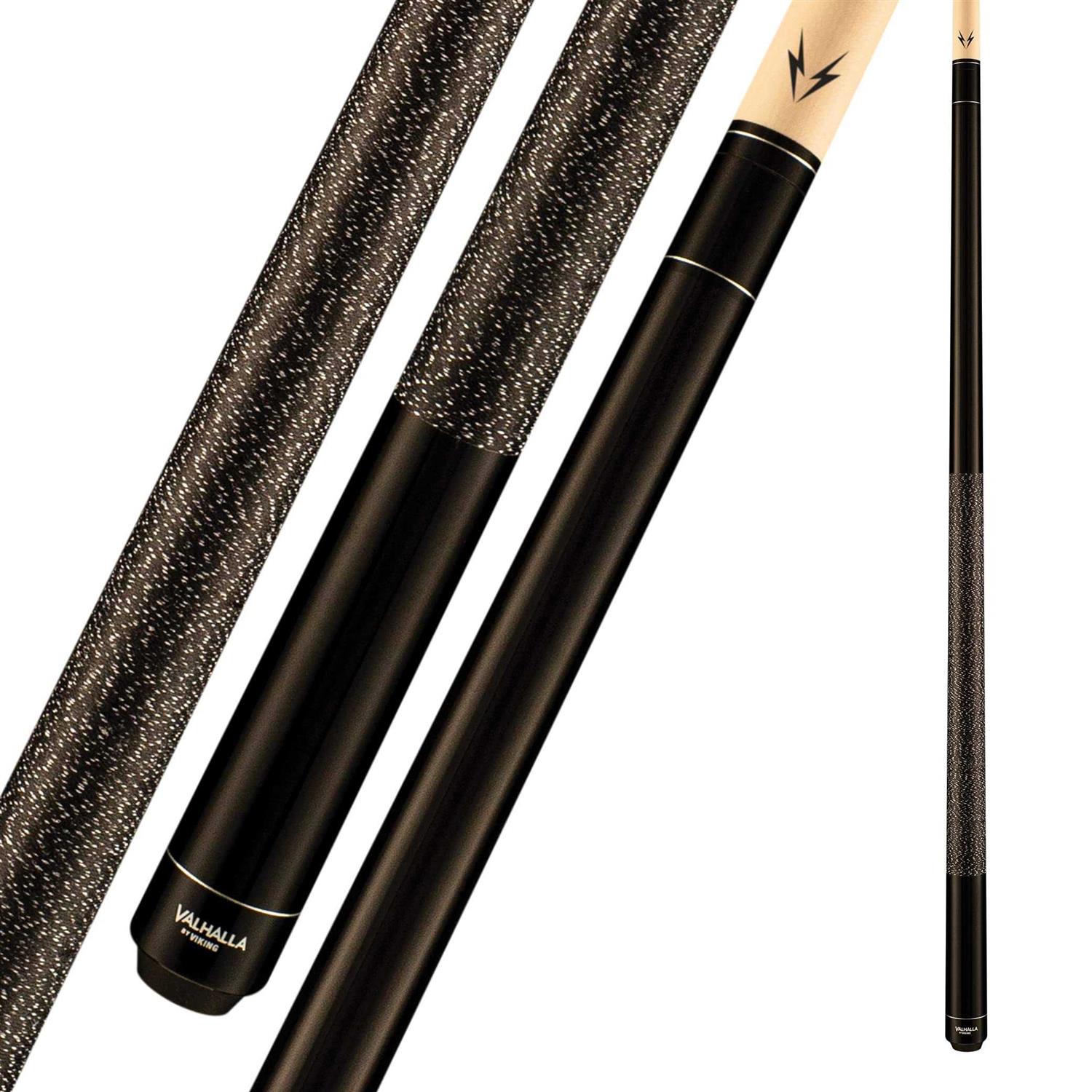 Cue Sticks by Viking. Details:Behold Valhalla. Created by the engineers at Viking, Valhalla cues bring high-tech performance and killer style to a single, powerful tool. Concentrated knowledge and hard-won insights explain the inner science. Available Weights: 18-21 oz. Designed for Playing/Shooting. Ferrule: High Impact Resin. Grip: Irish Linen. Joint Collar: Black with Nickel Silver Rings. Joint Type: Stainless Steel 5/16 x 18 Threaded. Number of shafts: 1. Overall Length: 58 in. Two-Piece design. 13mm Shaft Diameter. 29 in. Shaft Length. Shaft Material: Maple. Shaft Taper: Pro. Tip Hardness: Medium. Tip Material: Leather. Weight Adjustable.
