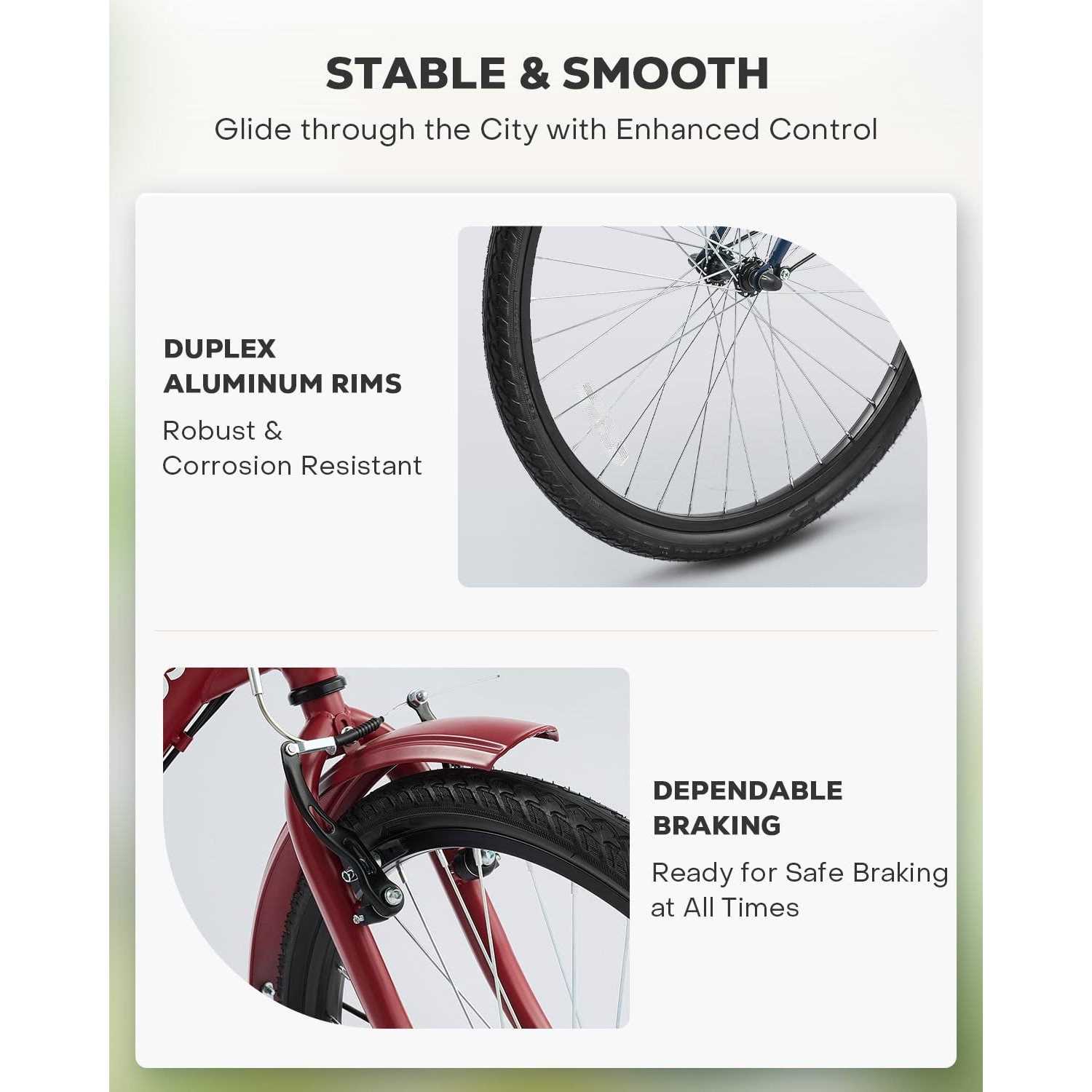 Whether you’re an urban commuter, a senior or older adult, or someone seeking enhanced stability, this 24-inch adult tricycle is meticulously crafted to cater to your diverse needs. Safety and convenience are at the heart of our design, so you can ride with peace of mind. The user-friendly folding design enables you to take this adult tricycle anywhere and effortlessly pack it in your car or trunk. Our low step through frame ensures easy on and off, while the 7-speed Shimano derailleur offers a smooth ride whether you are cruising on level roads or climbing uphill. The wheeled basket, with a 66 lb. load capacity, can be conveniently detached for transporting your furry friends. Constructed with high carbon steel, this three wheel bike effortlessly supports riders up to 330 lb. and provides long-lasting service. So why wait? Get your own trike and experience the ultimate combination of convenience, stability, and comfort! Fold and Go: Featuring a convenient folding design, this 24 inch adult tricycle offers effortless storage in your car or trunk, perfect for spontaneous getaways, leisurely outings, and daily grocery shopping! Smooth Shifting: This three wheel bike boasts a 7-speed Shimano derailleur that provides smooth and accurate gear changes with easy thumb shifters, ensuring seamless and stable rides across a variety of terrains. Large Removable Basket: Effortlessly store groceries, carry essentials, or even bring your furry companions along with this 3 wheel bicycle’s removable wheeled rear basket, accommodating weights of up to 66 lb. Safe & Cozy Ride: Designed to provide a secure and wobble-free journey, this adult trike is perfect for riders of all ages and skill levels. The extra large saddle ensures exceptional comfort, making it an ideal choice for longer journey. Ideal Match for You: Expertly crafted from high carbon steel and featuring a low step-through frame, this folding trike is tailored to offer optimal support for riders weighing up to 330 lb. and ranging in height from 4’11 inch to 5’7 inch. Specifications Material: High Carbon Steel, Aluminum Alloy