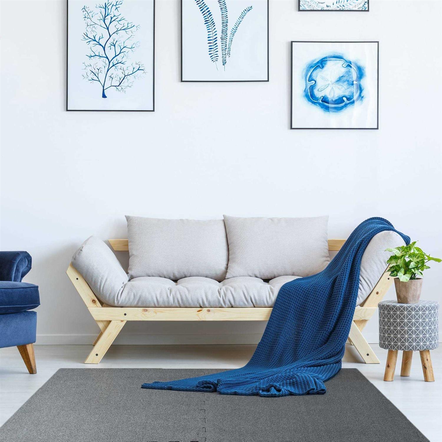 High-suction and/or roller-brush vacuum cleaners are not recommended. Designed for assembly on a hard, flat indoor surface, the Interlocking Carpet Tiles will provide a durable and comfortable padded surface to reduce impact and joint strain, and the vibrant colors will enhance the appearance of any space. Please note that orders may include product from more than one dye lot and as such, slight color variations may occur. Interlocking tiles should not be installed over existing carpet, and you may wish to use double-sided flooring tape for any semi-permanent installation or in particularly high-traffic areas. Keep in mind that the EVA foam padding is a soft product and may indent under furniture or heavy objects. Just like with regular carpet, the tile surface is subject to damage from pets or rough use. Each Interlocking Carpet Tile measures 24 inch x 24 inch (4 square feet per tile) and comes with two detachable border pieces included, allowing you to finish most regular installation shapes with a straight edge. EVA foam is easily trimmed with a sharp knife or scissors, making it easy to measure your space and cut tiles to fit for a snug wall-to-wall installation if you prefer.