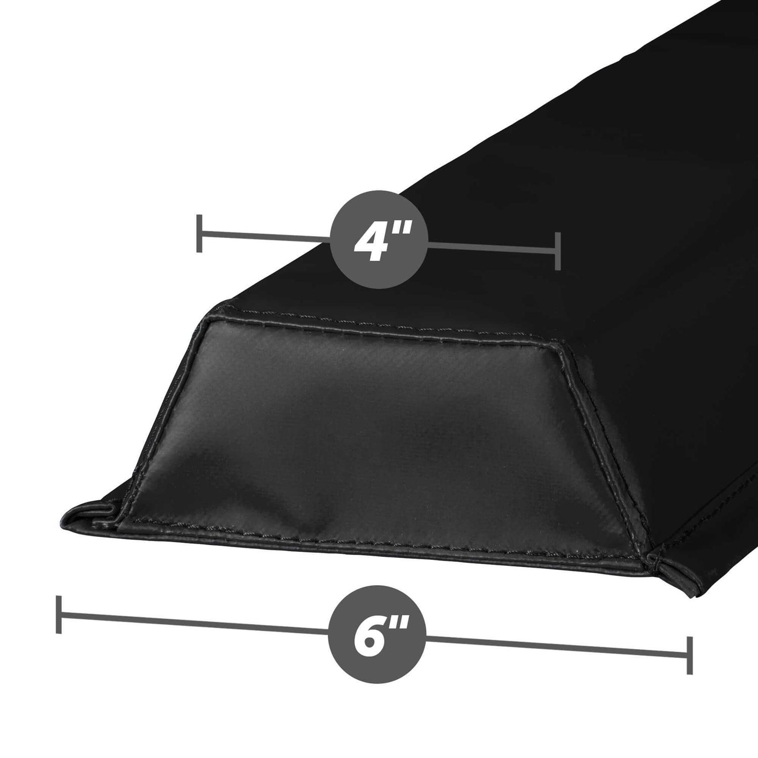 - Dimensions: 9′ long x 2.5″ high. 4″ surface widens to 6″ base for extra stability