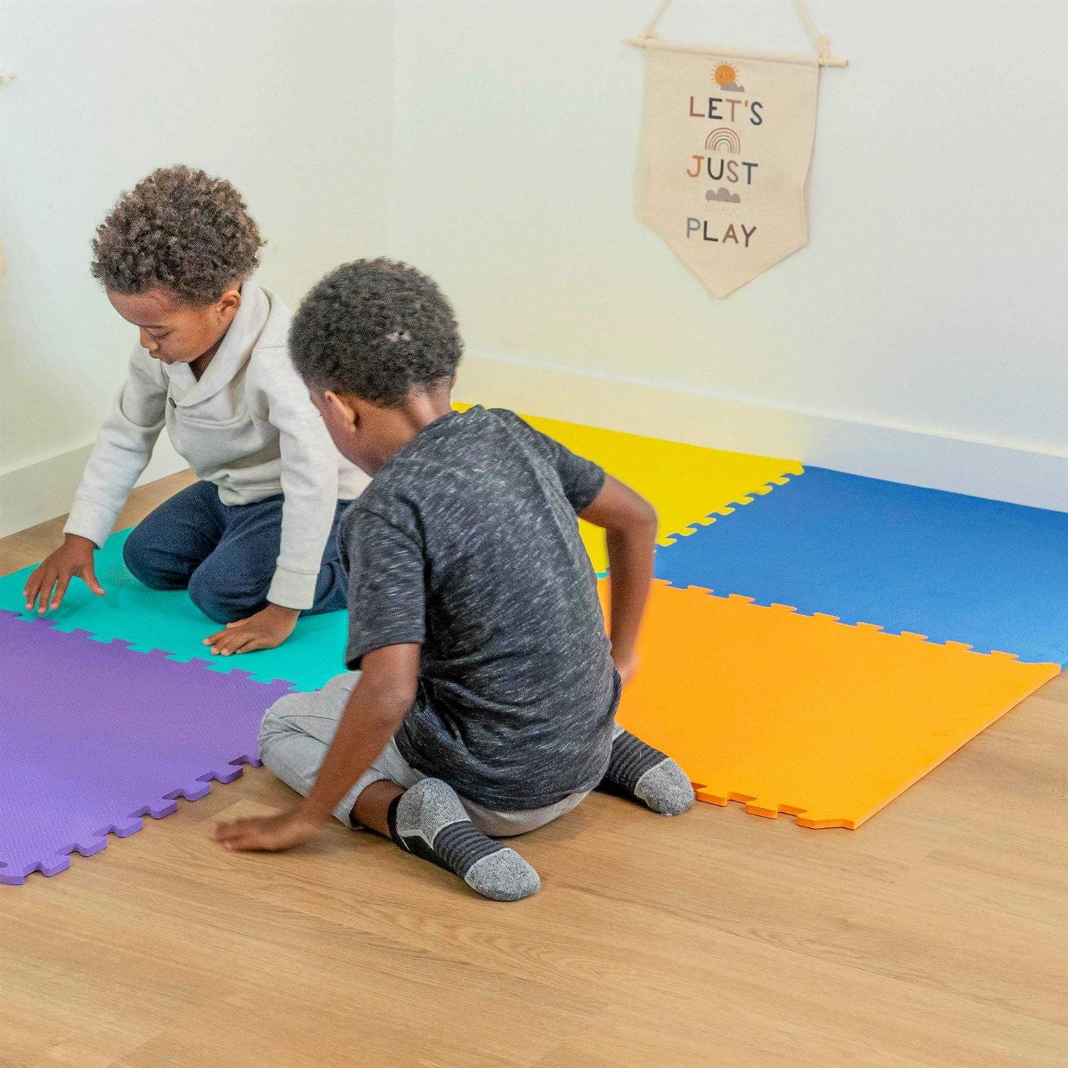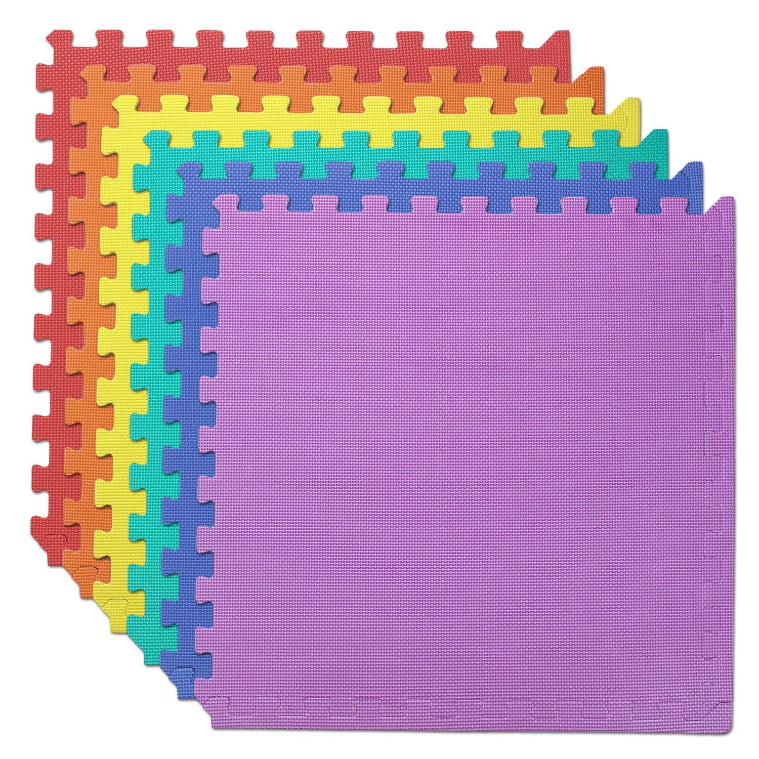 We Sell Mats 3/8″ Thick Interlocking Foam Floor Mats Multi-Color 24 Sq ft (6 Tiles)