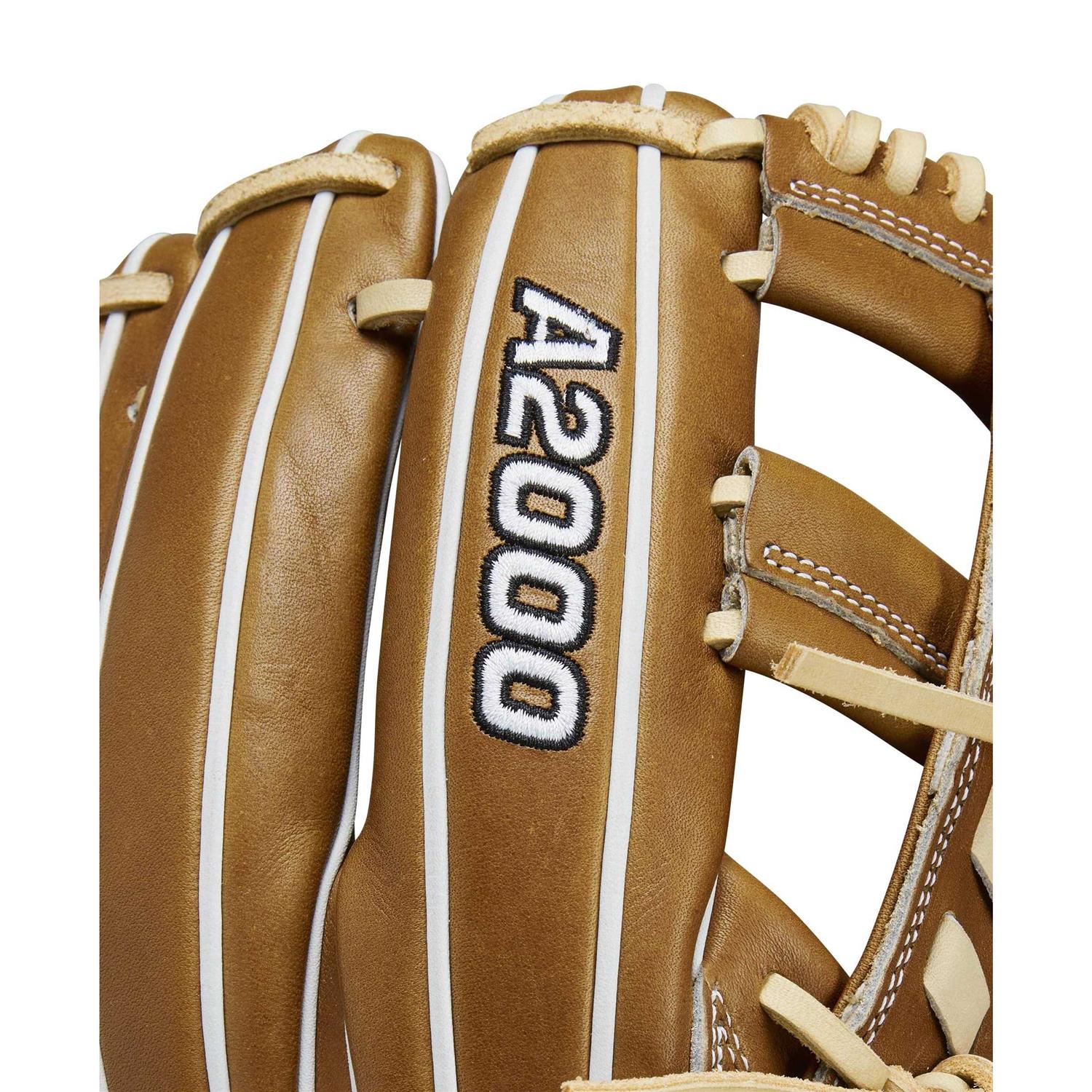 This Wilson glove is ideal for middle infielders who prefer a deep pocket WBW101384115, the fan-favorite A2000 1716 takes advantage of gap welting – a portion of the palm leather folded between the index and middle fingers – to stabilize the pocket. This 11.5” A2000 has the ideal combination of reach and control for second base, third base and shortstop, and its Cross Web helps secure hard-hit line drives, scorching ground balls or high-flying pop-ups. The Saddle Tan & Blonde Pro Stock leather offers durable performance to match its lasting appearance.