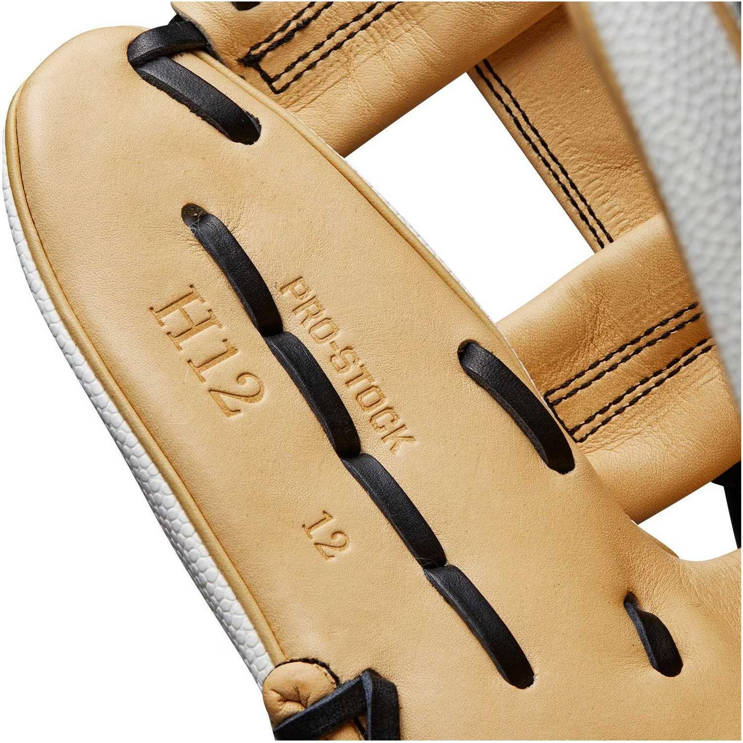 White SuperSkin and Blonde Pro Stock leather meet in the 2023 A2000 H12SS fastpitch glove to vacuum up ground balls and command the infield. Ideal for defensive stars turning two up the middle or making backhand plays at third base, this 12” infield glove offers the reach required by versatile playmakers. Gradient Bold Logos in Red and Black bring a modern appearance to the A2000 H12SS. The Blonde Pro Stock leather palm delivers unrivaled durability and feel preferred by softball’s best players, and the shallow pocket design and H-Web construction lead to speedy transfers for sure outs. Pro Stock Leather is preferred for its rugged durability and unmatched feel SuperSkin is a microfiber material that’s half the weight of Pro Stock Leather, but twice as durable. Its moisture-resistant design extends the longevity of the glove, and is easier to clean than traditional leather. Featuring our ProLux Leather, the liner of the redesigned A2000 has a richer, softer feel against your hand. The all-new Comfort Sleeve is the finishing touch, concealing the binding in the wrist for more comfort than ever before. Dual Welting in Wilson gloves goes beyond a mere cosmetic effect, as it’s integrated into the liner of each infield, outfield and pitcher’s model, offering better support and helping your glove hold its shape better over time. Flat Finger Binding gives players who prefer to play with a finger outside the glove greater comfort and control in the field. By reducing the amount of space between your finger and the back of the glove, you’ll experience less pain when making plays Keeps your hand dry and comfortable on the field and behind the dish Multiple eye-catching colors in the signature Wilson logos offer Pro Stock ball gloves a modern appearance. Adjustable rawhide laces extending from the wrist closure to allow for easy adjustments on the move.