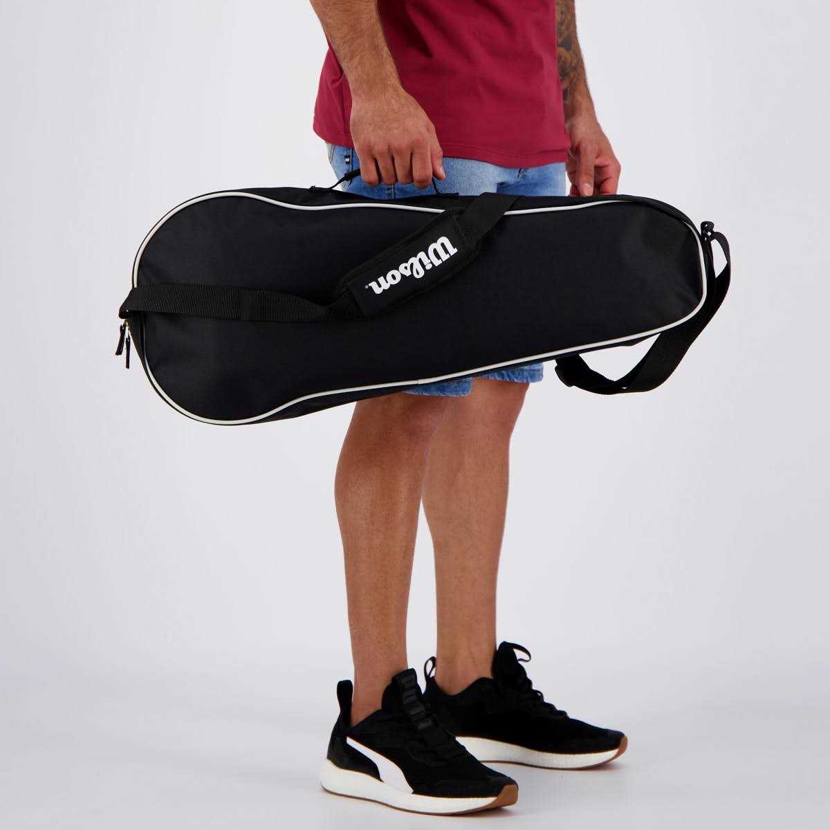 Dimensions – 71 x 8 x 29 cm 1 main compartment for up to 3 rackets Front zipped accessory pocket. Carry handle and padded shoulder strap. The Wilson Advantage III is a stylish 3 racket bag with 1 main compartment and a front zipped pocket perfect for accessories. It features a carry handle and a padded shoulder strap to ensure comfortable transportation.