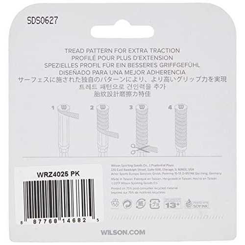 A tread pattern for extra traction and an extra tacky surface for enhanced comfort and feel 3 overgrips per package.