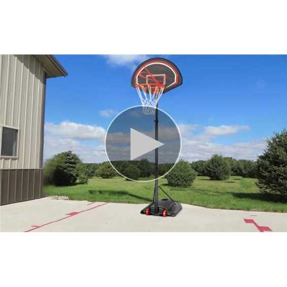 Stable Structure:The triangle provides a heavy base and a sturdy structure for the stand.the round recess is designed for placing your basketball. Collapsible design: When not in use or for transport, our basketball hoop system can be disassembled into flat pieces, which only takes up very little storage space in your garage or truck. Easy installation required: Simple assembly is required for this basketball hoop. With the illustrated user manual and tools enclose, you can set it up quickly and without difficulties. Material: painted iron, PE, PVC; Overall dimension: 82 x 56 x (217-277)cm/ 32.5 x 20 x (85.5-109)”/2.7 x 1.8 x (7-9)ft; Rim height adjustment: incremental 170-230cm/ 5.6-7.5ft; Maximum base size (filled with water): 8.7-gallon Height adjustable: This basketball hoop can “grow” with your little players! The telescoping height rim adjustment allows for a range of 5.6ft/170cm to 7.5ft/230cm in 4.7”/12cm increments. With the height adjustment settings, our portable hoops will be good practicing equipment for younger players who are continually growing.