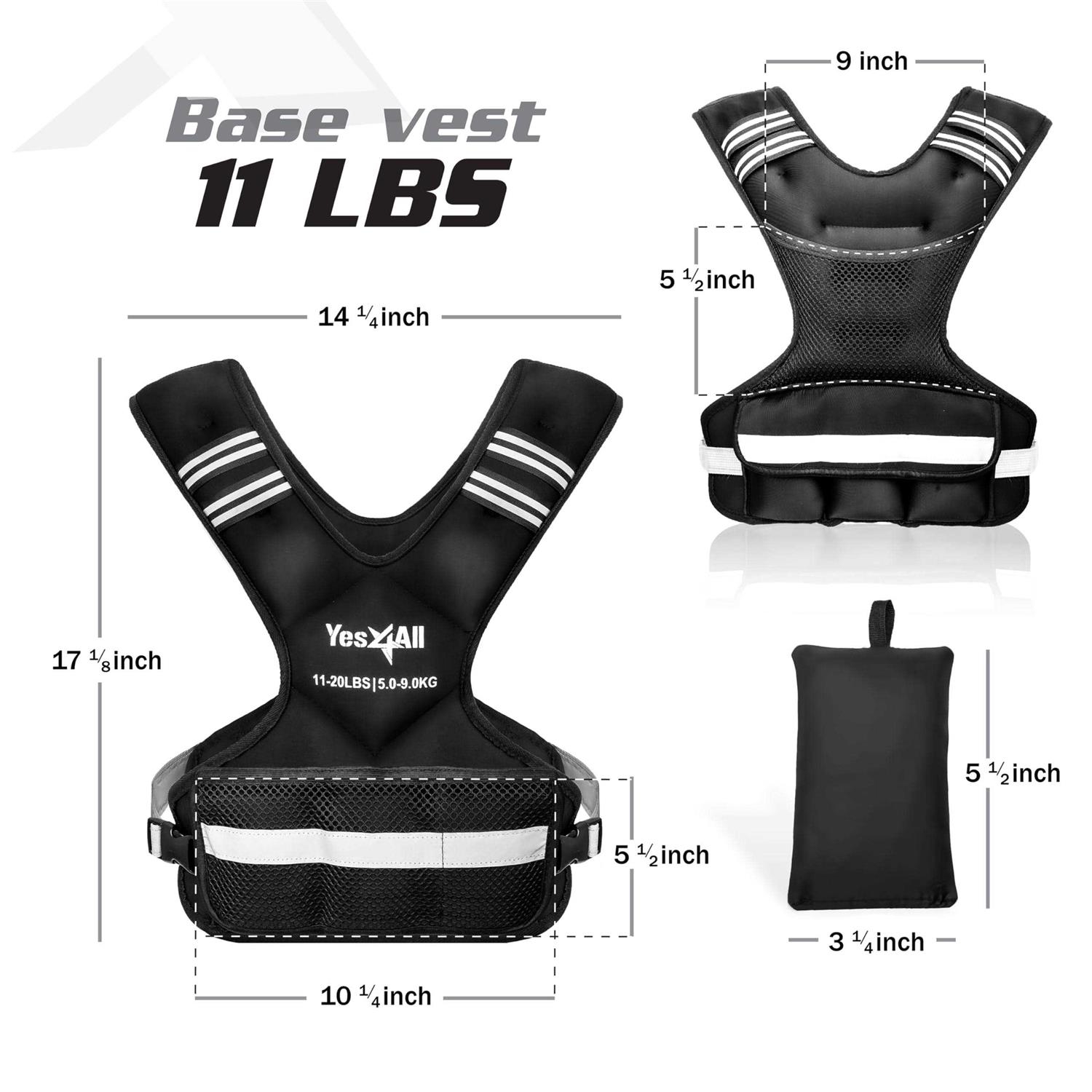 Yes4all Adjustable Weighted Vest with Reflective Strip,11-20 lbs Weight Vest for Strength Training for Men & Women