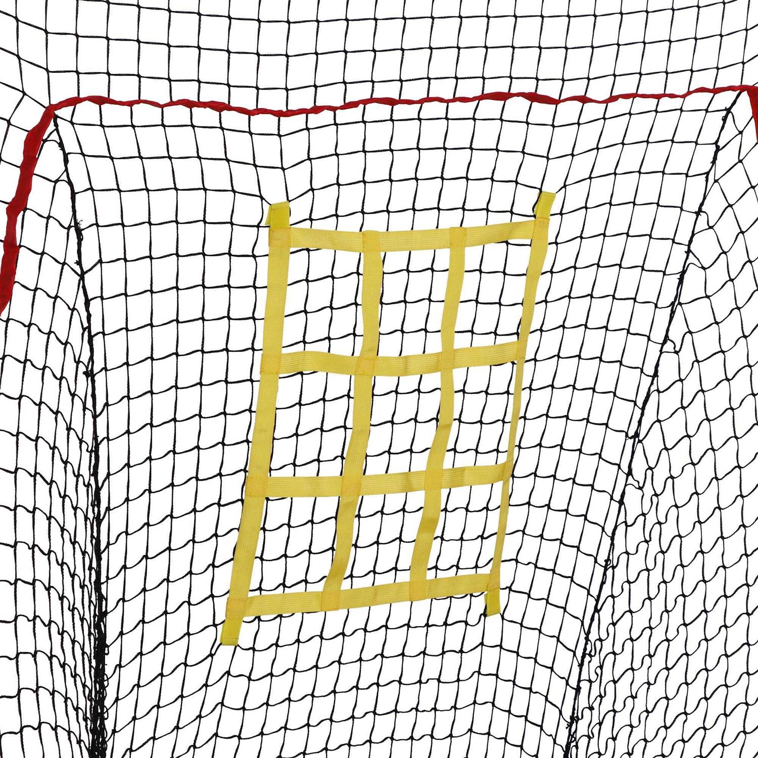 ZenSports 7x7FT baseball & softball net features with yellow removable strike zone to improve your pitching accuracy, a large sock net to catch and hold balls that make your practice more efficient. The base is made of thick powder-coated steel and 4 ground stakes, adding rigidity and stability that can withstand your hits and pitches, tear-resistant polyester net and flexible fiberglass bow poles increase greater stability, making it super durable to use. This baseball net is an ideal choice for children or adults, beginners, amateurs, professional players hitting, pitching, fielding soft throwing, catching practice. Coming with a durable carry bag, you can store the baseball net anywhere and take it out for practicing anytime. Great for any backyard, garage, or on the field.